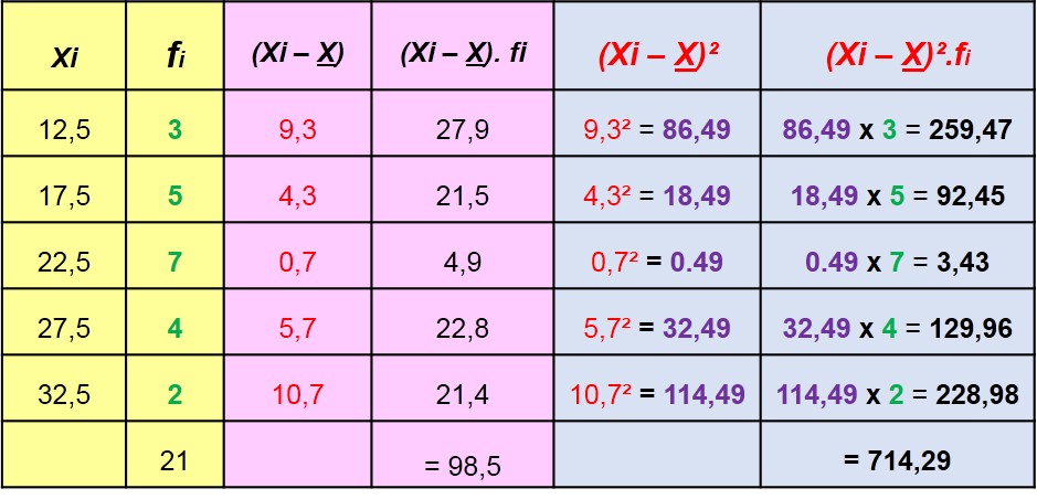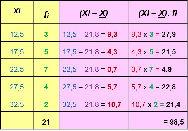Ejemplo: Calcular la desviación media de la distribución cuya media aritmética es de 21,8: